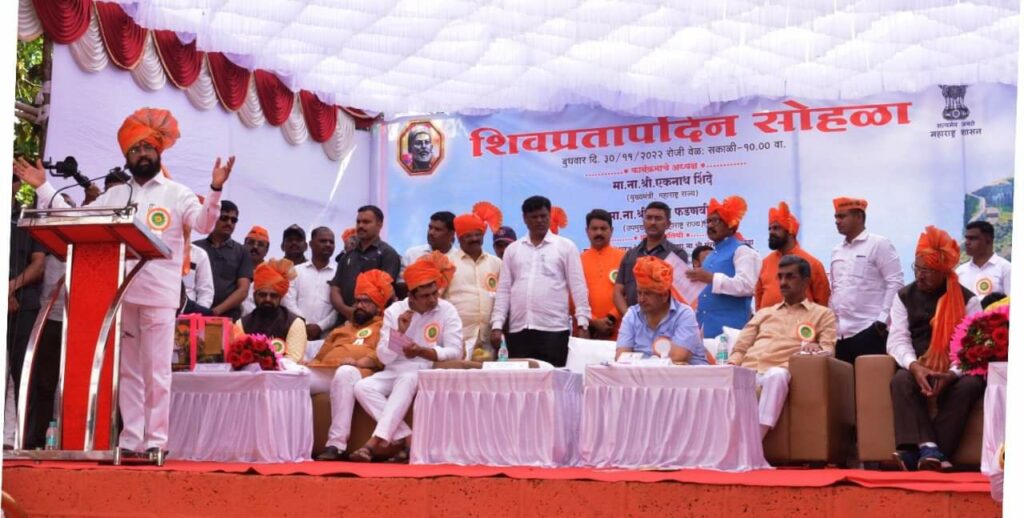 यावेळी शिवकालीन गड किल्ले संवर्धनासाठी दुर्ग प्राधिकरण स्थापन करण्यात येणार असल्याचे प्रतिपादन मुख्यमंत्री श्री शिंदे यांनी यावेळी केले. कार्यक्रमाच्या प्रारंभी किल्ले प्रतापगड येथील बुरुजावरील शिवशाहीचे प्रतीक असलेल्या भगव्या ध्वजाचे ध्वजारोहण केले. त्यानंतर भवानी मातेची मनोभावे मुख्यमंत्री श्री. शिंदे यांनी आरती केली. छत्रपतींची मूर्ती ठेवण्यात आलेल्या पालखीचे मुख्यमंत्री एकनाथ शिंदे यांच्या हस्ते पुष्प अर्पण करुन भक्तिभावे पूजन करण्यात आले. यावेळी मुख्यमंत्री श्री. शिंदे यांच्या हस्ते छत्रपती शिवाजी महाराजांच्या अश्वारुढ पुतळ्यास पुष्पहार अर्पण करण्यात आला.