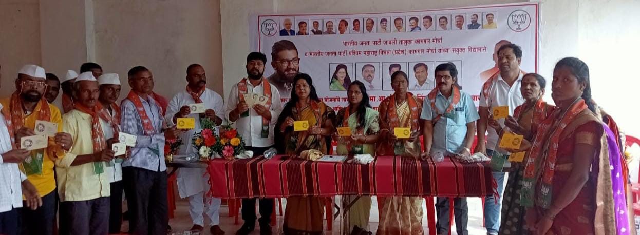मेढा.दि.१०. भा.ज.पा. कामगार मोर्चा जावली तालुका व कामगार मोर्चा पश्चिम महाराष्ट्र विभाग यांच्या संयुक्त विद्यमाने केंद्र सरकार, राज्य सरकारच्या विविध योजना प्राप्त लाभार्थी यांचा सत्कार सोहळा संपन्न झाला.