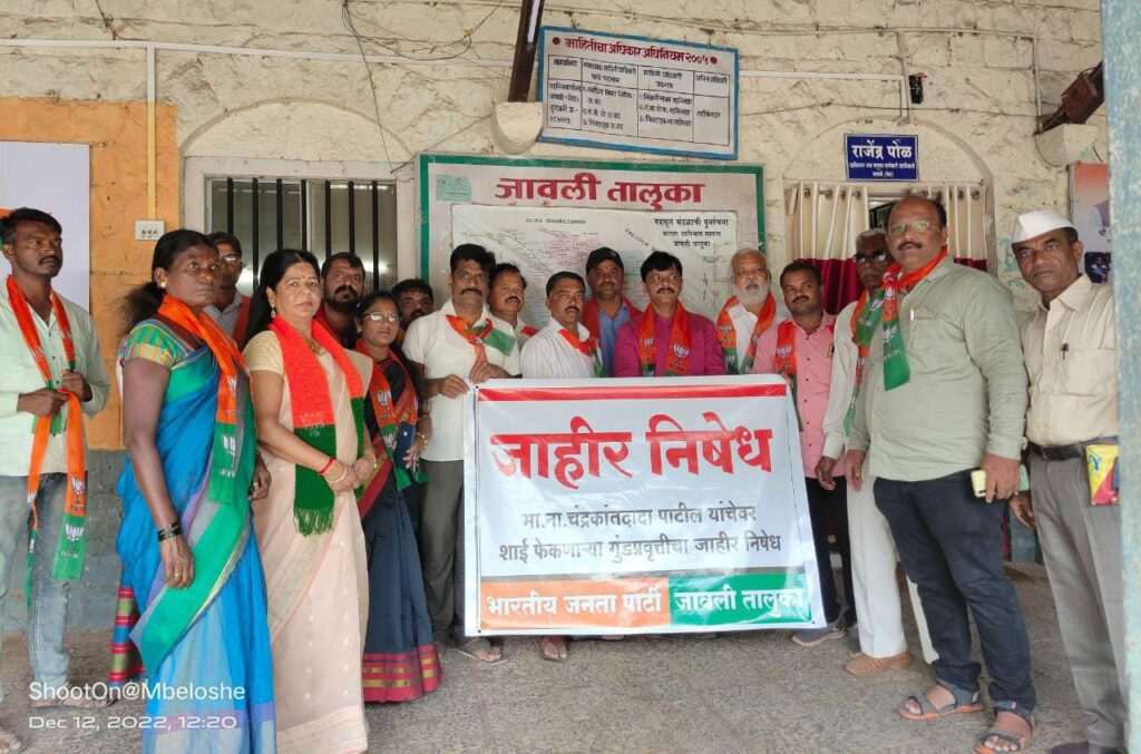 मा.मंत्री चंद्रकांत दादा पाटील यांच्यावर झालेल्या शाई हल्ल्याचा भाजपा जावली कडून तिव्र निषेध