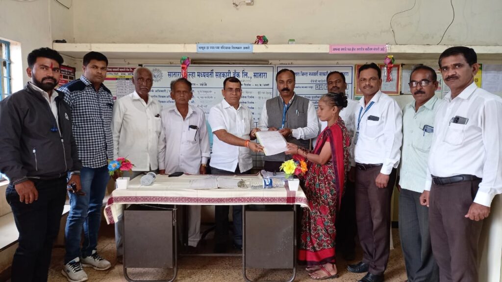 सातारा जिल्हा मध्यवर्ती सहकारी बँकेच्या शाखा गांजे येथील खातेदार भरत यदू शेलार यांचे नुकतेच अपघाती निधन झाले होते. त्यांच्या वारसास PMSBY योजनेचे माध्यमातून विमा हप्ता रूपये वीसचे नुतनीकरण वेळेत केले, यामुळे भरत शेलार यांचे निधनानंतर त्यांचे वारसदार श्रीमती कविता भरत शेलार यांना केंद्र सरकारच्या योजनेचा लाभ म्हणून दोन लाख रुपये विमा रक्कम प्रदान करताना ते बोलत होते. वारसदार कविता शेलार यांना सदरची रक्कम करताना बॅंकेचे संचालक ज्ञानदेव रांजणे यांचे हस्ते वितरीत करण्यात आली.