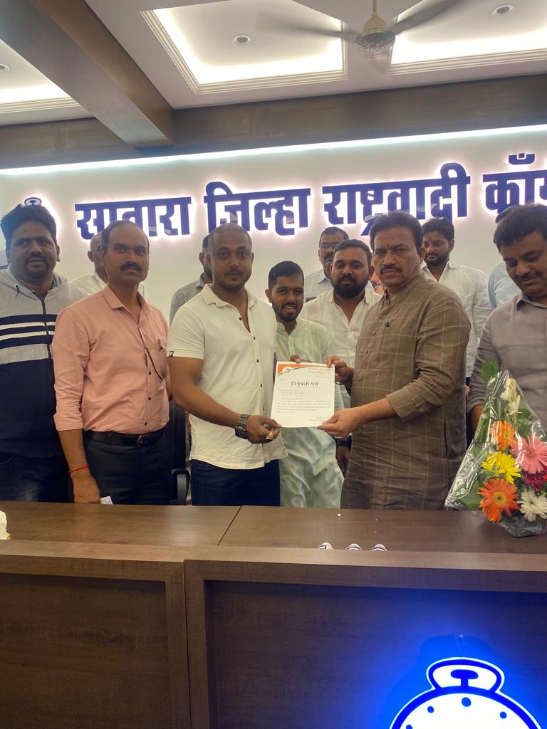 राष्ट्रवादी युवक पदाधिकाऱ्यांची निवडी करण्यात आलेले पदाधिकारी पुढीलप्रमाणे —— सुरेश गोळे : युवक उपाध्यक्ष ( हातेघर ),चेतन सुर्वे : युवक उपाध्यक्ष (घरातघर ), इम्रान आत्तार युवक शहर अध्यक्ष (मेढा ), अखिब पठाण युवक शहर उपाध्यक्ष (मेढा ),प्रथमेश भणगे कुसुंबी गट अध्यक्ष (केडंबे ), रविराज चिकणे युवक सरचिटणीस ( गांजे ), उदय पार्टे युवक सरचिटणीस (केसकरवादी ),अमोल शिंदे युवक सरचिटणीस (हुंमगाव )समीर झोरे युवक सचिव (सह्याद्रीनगर ), शिवाजी गोळे युवक सचिव (महू )