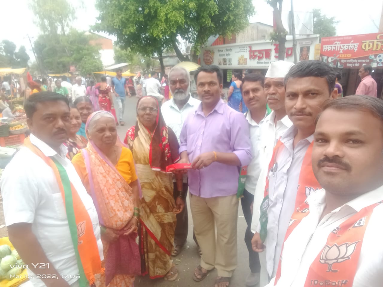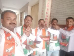 भाजप पक्षाचा विजयाचा आनंद करहर येथील बाजारपेठेमध्ये पेढे वाटून साजरा