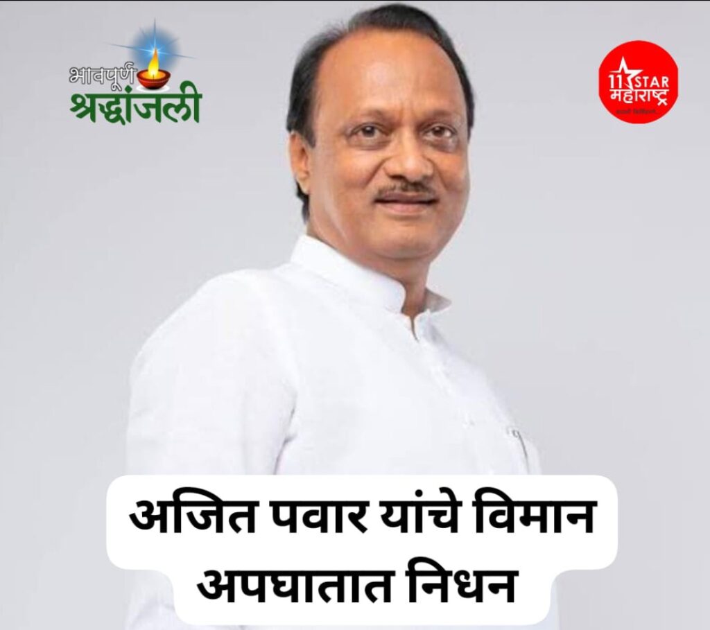 बारामती, दि. २८:    महाराष्ट्रातील बारामती येथे लँडिंग करताना अजित पवार यांचे विमान कोसळले, त्यात ६ जणांचा मृत्यू झाला. राष्ट्रवादी काँग्रेसचे नेते आणि उपमुख्यमंत्री अजित पवार यांचे खाजगी विमान महाराष्ट्रातील बारामतीजवळ कोसळले. लँडिंग दरम्यान हा अपघात झाल्याचे मानले जात आहे. विमान शेतात कोसळले आणि त्याला आग लागली. स्थानिक लोक, प्रशासन आणि बचाव पथके घटनास्थळी पोहोचली आहेत.