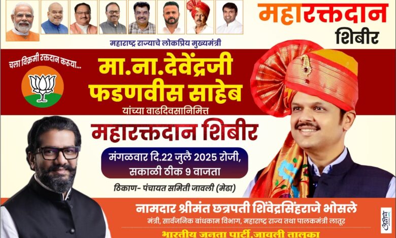 Read More »स्टार ११ महाराष्ट्र केळघर.दि.२१. राज्याचे मुख्यमंत्री देवेंद्र फडणवीस यांच्या वाढदिवसानिमित्त भाजपतर्फे जावली तालुक्यात महारक्तदान शिबिराचे आयोजन करण्यात आले असून इच्छुक…